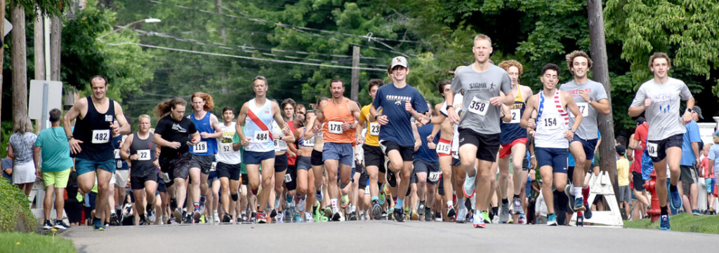 That’s how long people of all ages have lined up on Terrace Avenue on an early morning on or near to July 4th in shorts and running shoes, taken off on foot, and ended back where they started 6.2 miles and between thirty and ninety minutes later. Before they covered that distance, they all got t- shirts and a runner’s bib. With an average of 300 runners a year (as high as 500 one year) that’s over 13,000 tops.